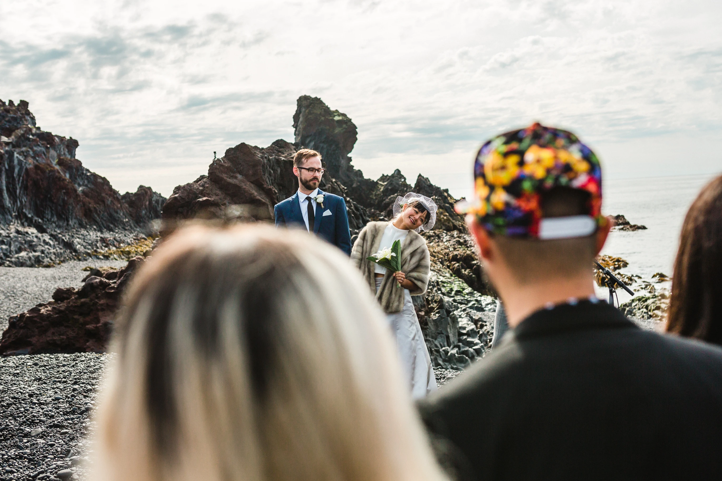 The wedding ceremony location was a black pebble beach surrounded by rock formations of all sizes and shapes and of course the powerful ocean. Haukur the Nordic chieftain that performed the ceremony had everyone drink from the horn wishing the newlyweds all the luck and love in their future.